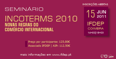 No dia 15 de Junho em Coimbra terá lugar mais uma acção de formação conjunta AIP / IFDEP subordinada ao tema INCOTERMS.formacao_aip
